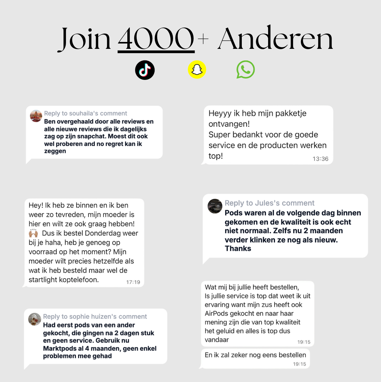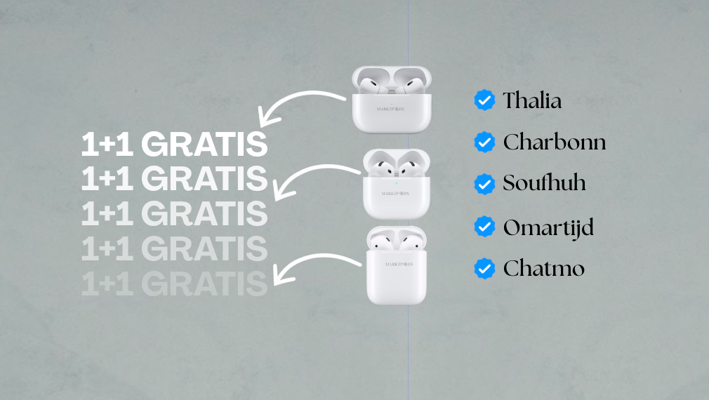 Bestel één set Marktpods en krijg de tweede set gratis. Je bent vrij om modellen te combineren.